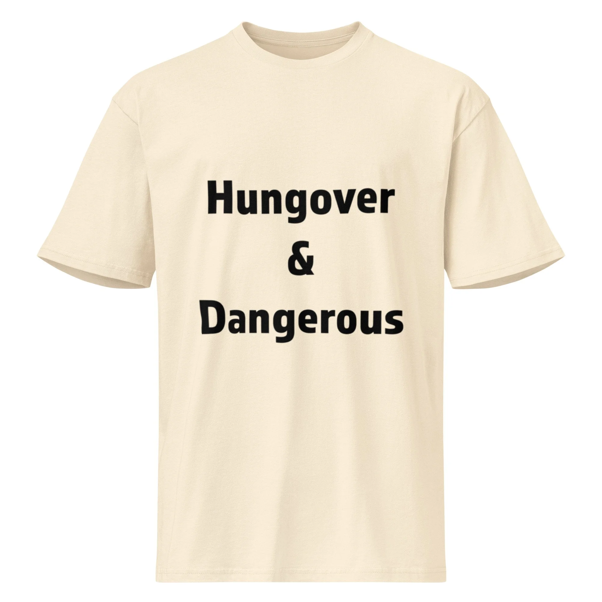 Shop › Hungover & Dangerous Tee Image 1 of 4 Image 2 of 4 Image 3 of 4 Image 4 of 4 Hungover & Dangerous Tee from $32.99 The shirt for when you had a few too many pints before a game or early practice. • 100% combed ring-spun cotton • Fabric weight: 5.5 oz/yd² (180g/m²) • Side-seamed construction • Drop shoulder sleeves • 1 × 1 ribbed collar reinforced neckline • Tear-away tag • Blank product sourced from Bangladesh Color: Select Color Vintage White White Size: Select Size S M L XL 2XL 3XL Add To Cart Added! The shirt for when you had a few too many pints before a game or early practice. • 100% combed ring-spun cotton • Fabric weight: 5.5 oz/yd² (180g/m²) • Side-seamed construction • Drop shoulder sleeves • 1 × 1 ribbed collar reinforced neckline • Tear-away tag • Blank product sourced from Bangladesh