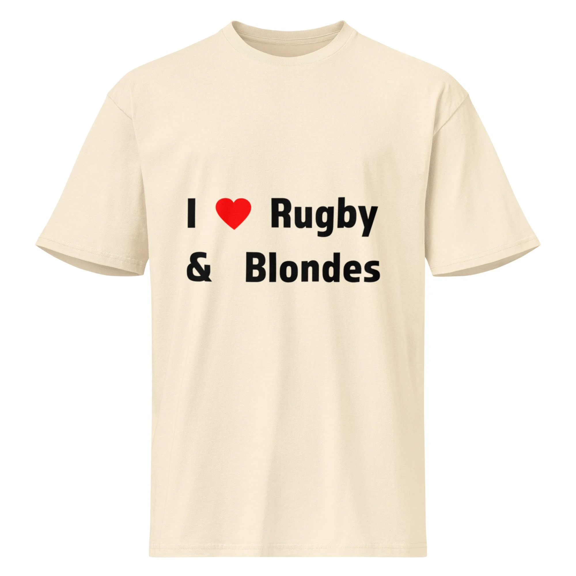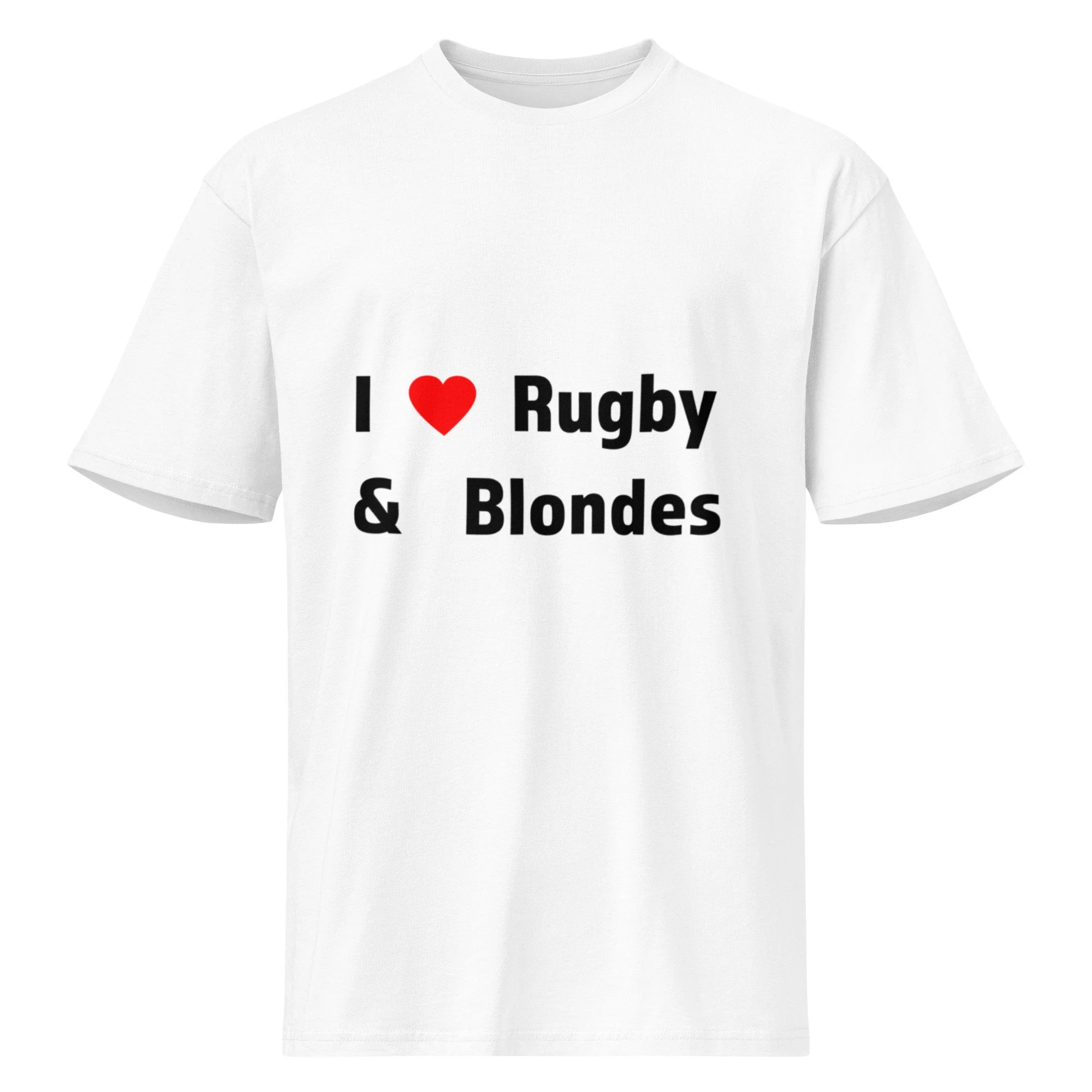 Shop › I <3 Rugby & Blondes Tee Image 1 of 4 Image 2 of 4 Image 3 of 4 Image 4 of 4 I <3 Rugby & Blondes Tee from $32.99 • 100% combed ring-spun cotton • Fabric weight: 5.5 oz/yd² (180g/m²) • Side-seamed construction • Drop shoulder sleeves • 1 × 1 ribbed collar reinforced neckline • Tear-away tag • Blank product sourced from Bangladesh Color: Select Color Vintage White White Size: Select Size S M L XL 2XL 3XL Add To Cart Added! • 100% combed ring-spun cotton • Fabric weight: 5.5 oz/yd² (180g/m²) • Side-seamed construction • Drop shoulder sleeves • 1 × 1 ribbed collar reinforced neckline • Tear-away tag • Blank product sourced from Bangladesh